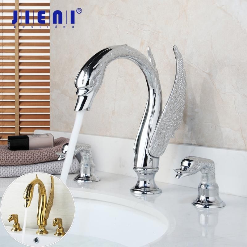 2020 Jieni Golden Plated Swan Bathtub Faucet 2 Handles Deck Mounted Chrome Polish Shower Bathroom Vessel Basin Faucet Mixer Tap From Sakuna 201 73 Dhgate Com